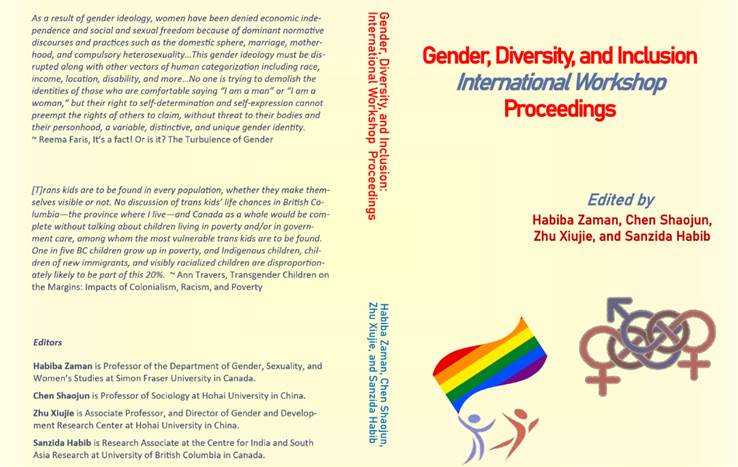 “社会性别、多样化以及包容性”国际研讨会论文集于2021年1月由加拿大方正式刊印出版(ISBN:9781772870824 ,SFU Library Digital Publishing Link: http://monographs.lib.sfu.ca/index.php/sfulibrary/catalog/book/83)。加拿大西蒙菲莎大学社会性别、性以及妇女研究系Habiba Zaman教授,中国88858cc永利官网性别与发展研究中心陈绍军教授、朱秀杰副教授,加拿大英属哥伦比亚大学印度和南亚研究中心Sanzida Habib副研究员等4位学者担任联合主编。中心前主任施国庆教授为会议筹备和论文集出版工作做出了重要贡献。