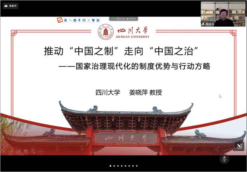 在课程伊始,姜晓萍教授率先破题,解释“中国之制”与“中国之治”这一字之差的内涵,并引出“如何将制度优势转化为治理效能”的课程主线。本场课程共分为三个部分,即“认知国家治理的理论内涵”、“破解中国之制的基因密码”、“明确中国之治的实现途径”。姜教授首先带领大家从全球治理的视角看国家治理,并且从应对新冠疫情情况入手,从国家能力、社会信任和领导能力等方面来引出我国的国家治理的优势,即建立统一高效的指挥体系、构建全民参与严密防控体系、全力救治患者拯救生命、依法及时公开透明发布疫情信息、充分发挥科技支撑短板。接下来姜教授延续授课脉络,继续讲解了国家治理的核心概念,国家治理的根本遵循,国家治理的内涵转换,透视国家治理的六个维度,厘清国家治理体系和治理能力的内在逻辑,聚焦国家治理的核心问题等方面,引起了同学们高度的关注和兴趣。