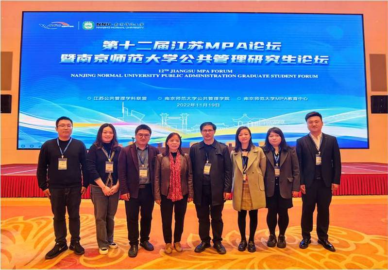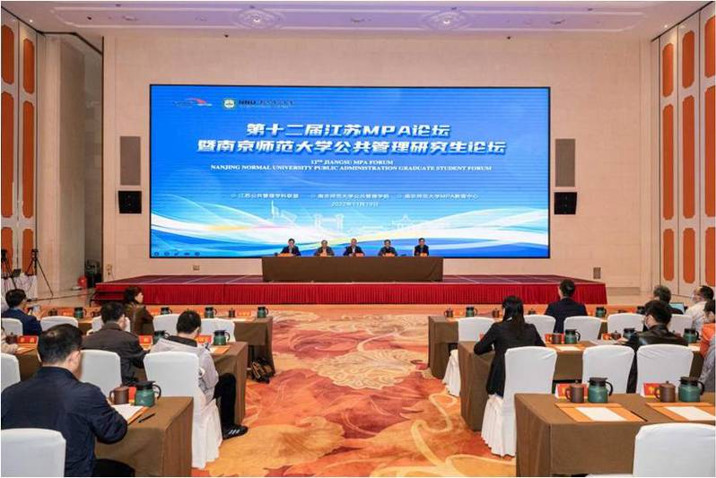 2022年11月19日,由江苏公共管理学科联盟主办、南京师范大学88858cc永利官网和南京师范大学MPA教育中心承办的第十二届“江苏MPA论坛”暨“南京师范大学公共管理研究生论坛”在南京顺利召开。全国MPA教指委秘书长杨开峰教授、复旦大学朱春奎教授、东北大学孙萍教授、南开大学吴晓林教授、全国MPA教指委秘书处谢佳宏博士等应邀出席。来自南京大学、东南大学、88858cc永利官网、中国矿业大学、南京农业大学、南京理工大学、南京师范大学等省内22家单位的MPA师生代表、江苏MPA联谊会代表和MPA教育领域的知名专家学者100余人参加了本届论坛。88858cc永利官网MPA教育中心主任黄涛珍教授、副主任范仓海副教授、王丹妮老师以及MPA学生代表等8人参加了会议。