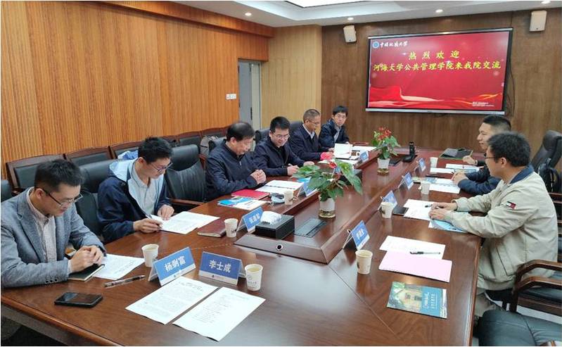4月27日上午,朱新华院长一行人前往中国地质大学(武汉)88858cc永利官网进行调研交流。教育部高校公共管理专业教指委委员王占岐教授、院长胡守庚院长、副院长龚健教授、土地资源管理系主任方世民教授等相关老师出席会议,双方围绕土地资源管理专业发展历程、人才培养体系、科研团队、师资队伍、实验室建设等方面深入交流探讨,进一步加强了双方的沟通和联系。