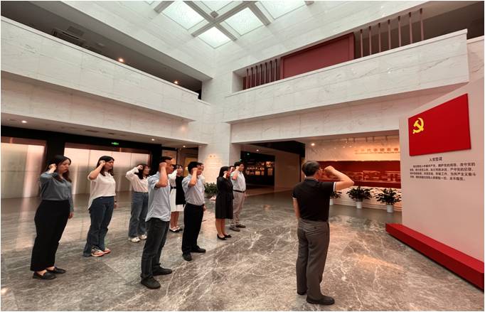 学院领导班子在梅园新村纪念馆广场的周恩来铜像前,肃立鞠躬、敬献花篮、聆听讲解。步入纪念馆大厅内,在党委书记蒲晓东同志的带领下,全体党员同志面对鲜红的党旗,重温入党誓词。随后,全体成员进入国共南京谈判史料陈列馆、中共代表团办事处旧址仔细参观,认真学习周恩来等老一辈无产阶级革命家的光辉业绩和高尚情操,接受深刻的爱国主义教育。