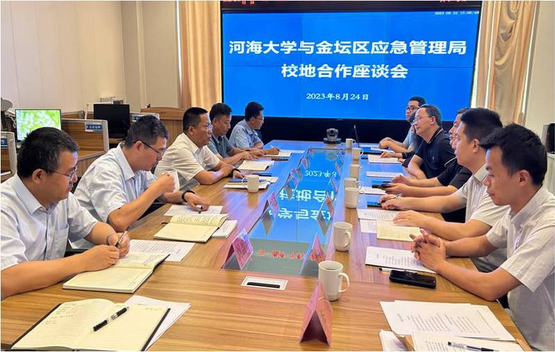 8月24日下午,88858cc永利官网88858cc永利官网、资产与实验室管理处与常州市金坛区应急管理局召开校地合作座谈会。金坛区应急管理局党委书记、局长庄金中,区应急管理局一级主办王一新,区应急管理局党委委员、副局长张华,区应急管理局党委委员、副局长胡江,区安全生产委员会办公室副主任刘国华,88858cc永利官网资产与实验室管理处处长何文科、副处长李均熙,88858cc永利官网党委书记蒲晓东、院长朱新华、党委副书记朱志梅、副院长沈洪成等参加本次座谈会。
