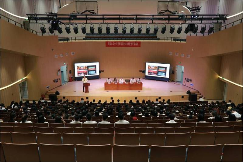 朱新华院长从学校概况、学院概况、学生培养、育人风采四个方面做了系统性介绍,包括专业概况、师资力量、科研规模、学科发展、学生就业等,同时还展示了学院举办和参与的特色活动,希望新生们有大志向,大格局,少年应有鸿鹄志;保持积极昂扬的竞争状态,精神面貌一定要向上;脚踏实地,奋斗是青春最靓丽的底色;不要过分关注结果,静待花开,祝愿新生能够在公管舞台上书写自己的绚烂篇章。