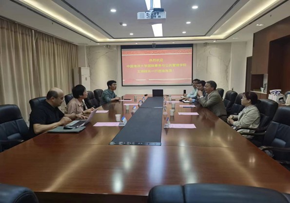 10月19日,中国海洋大学国际事务与88858cc永利官网院长王琪一行来88858cc永利官网调研交流。学院党委书记蒲晓东、原院长黄涛珍、副院长孙中艮、副院长陈涛、行政管理系杜春林副教授参加了座谈会。会议由蒲晓东书记主持。