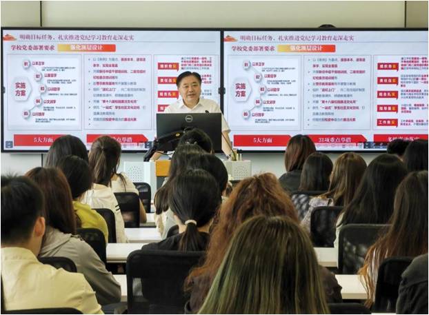 陆国宾书记从认识开展党纪学习教育的意义、学校推进党纪学习教育走深走实的举措和新时代大学生的担当作为三个方面展开,指出加强党的纪律建设,是确保全党统一思想、统一行动的重要保障,是维护党的团结统一、提高党的执政能力和领导水平的必然要求。中国共产党是靠革命理想和铁的纪律组织起来的马克思主义政党,纪律严明是我们党的光荣传统和独特优势,也是确保全体党员全心全意为人民服务的重要保证,全体党员要严格按照党的纪律要求约束自己,将党规党纪内化于心、外化于行。