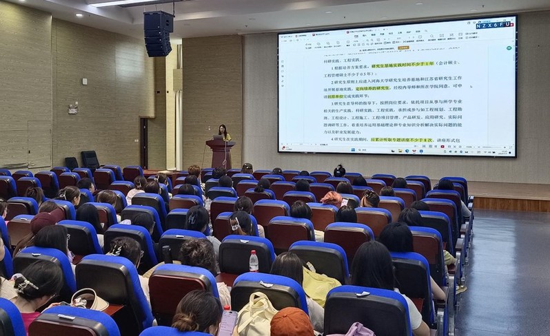 研究生培养秘书田然老师针对基地实践期间的学籍管理、论文工作环节和日常生活管理等方面向同学们做了详细解读。在基地实践期间,每位研究生需听取规定次数的专题讲座,登陆系统填写各环节日志和记录,同时与校内校外双导师保持紧密联系、推进学位论文撰写工作。在日常生活管理方面,田老师提醒各位同学认真学习《88858cc永利官网全日制专业学位硕士研究生基地实践手册》,遵守学校和基地单位双方的制度规定,注意用水用电安全。