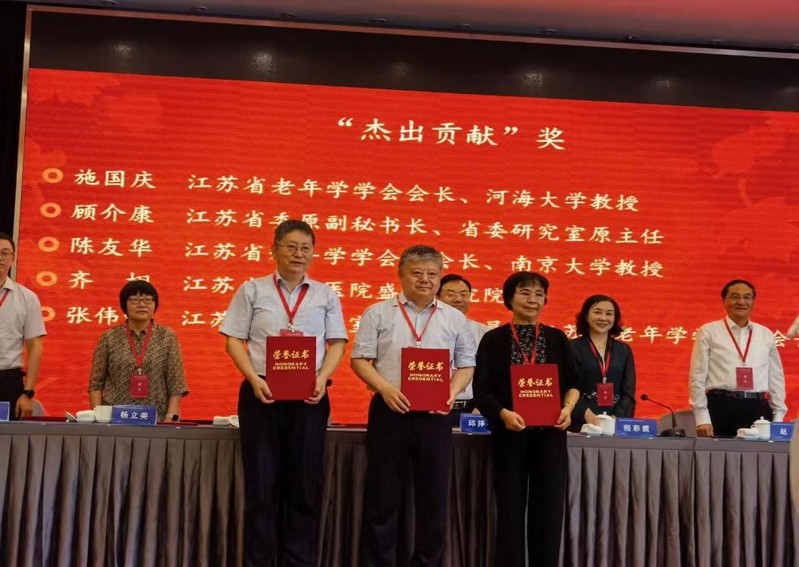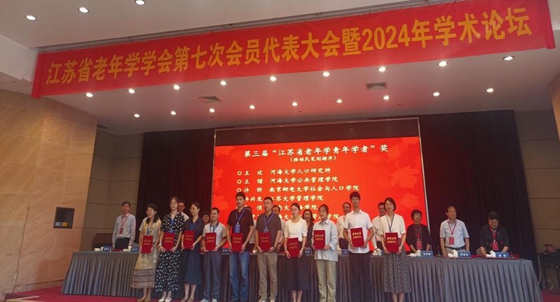 上午举行了“老年学研究与培训基地授牌仪式”及“第六届江苏省老年学学会奖”颁奖仪式。88858cc永利官网多位教师获奖,施国庆教授荣获“杰出贡献奖”;韩振燕、张鑫教授获得“先进工作者”奖;王欢副教授、施旖旎副教授,王锴博士、李梦凡博士荣获“第三届青年学者奖”;孙中艮教授、陈际华教授、韩振燕教授分别担任主任或副主任委员的老年学研究基地委员会、专家委员会、老年精神关爱专业委员会荣获“优秀专业委员会奖”;88858cc永利官网荣获“优秀研究与培训基地”奖。88858cc永利官网再次被评为“江苏省老年学研究与培训基地(2024-2028)”。