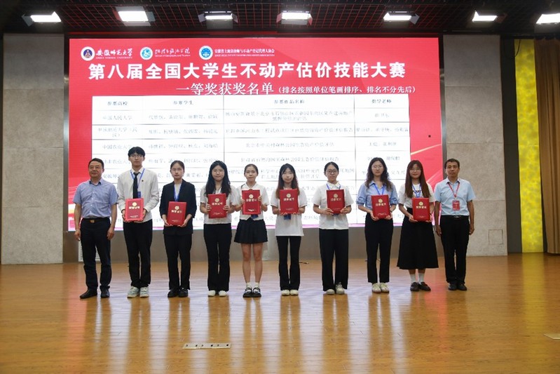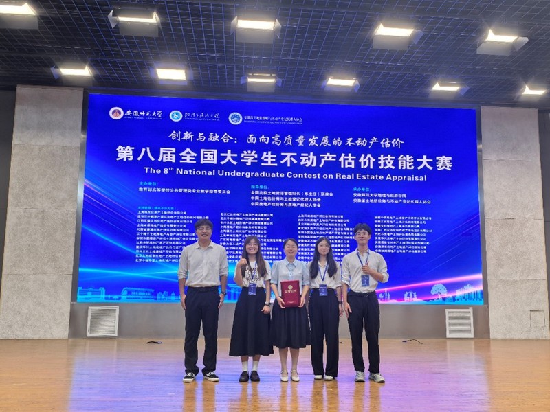 8月17-18日,由教育部公共管理类教学指导委员会主办,全国高校土地资源管理院长(系主任)联席会、中国土地估价师与土地登记代理人协会及中国房地产估价师与房地产经纪人学会指导的第八届全国大学生不动产估价技能大赛在安徽师范大学隆重举行。由88858cc永利官网赵亚莉副教授指导,2021级土地资源管理专业董雪情、石雨杭、郭珈源和陈智同学完成的《点水成金——南京市高淳区2023年水生态产品价值评估》作品荣获全国一等奖,创造了88858cc永利官网学子参赛历史最好成绩!