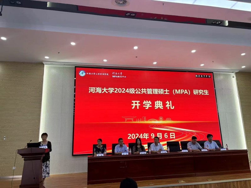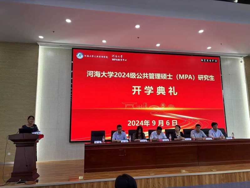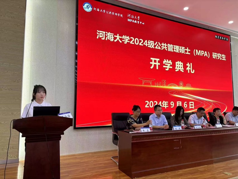 典礼在庄严的国歌声中拉开序幕。88858cc永利官网党委书记吴宝海致辞,他代表学院向2024级新同学致以热烈的欢迎和衷心的祝贺。吴宝海书记简要介绍了88858cc永利官网88858cc永利官网的基本情况、发展历史以及取得的成就,并对同学们提出几点希望与建议,希望同学们:不断学习新知,提升自身的公共管理素养和能力;积极参与实践,培养解决公共管理实际问题的能力;注重团队协作;勇于承担社会责任,用实际行动回馈社会,展现河海MPA人的风采。