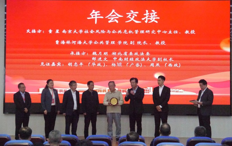 中共中央党校(国家行政学院)应急管理研究院(中欧应急管理学院)教授张小明主持年会交接与大会闭幕式。第五届年会交接方南京大学、88858cc永利官网代表童星、曹海林与第六届年会承接方中南财经政法大学代表邹进文等分别发言。88858cc永利官网88858cc永利官网副院长孙中艮进行闭幕总结。第一届至第四届年会承办单位的代表胡志平、杨虓、周燕等作为嘉宾,见证了年会交接仪式。