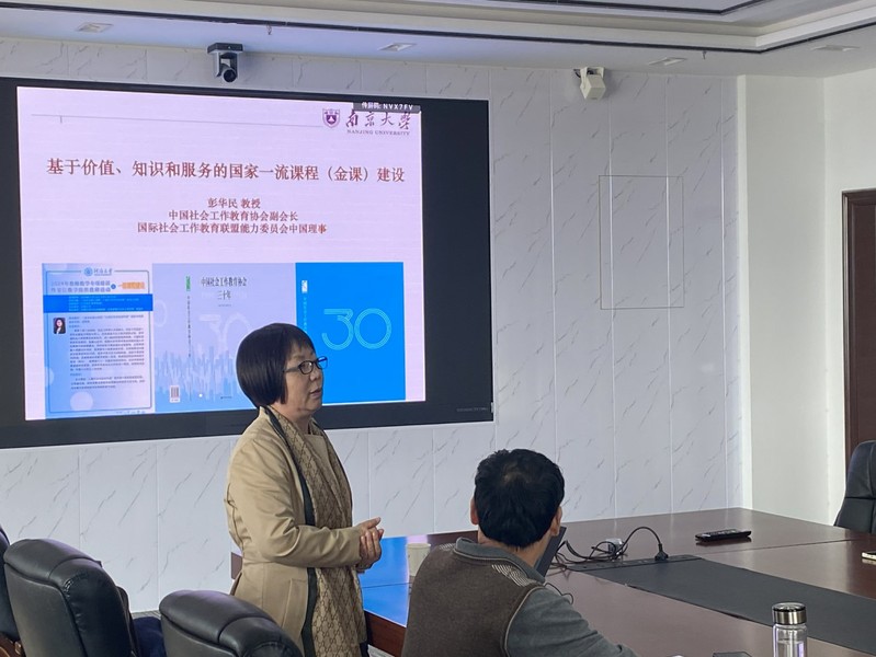 2024年11月13日,88858cc永利官网在厚学楼401举办了教师教学专项培训暨基层教学组织教研活动之国家一流课程建设讲座。中国社会工作教育协会副会长、南京大学社会学院彭华民教授受邀为88858cc永利官网教师分享“基于价值、知识和服务的国家一流课程(金课)建设”心得。本次讲座活动由顾金土教授主持,88858cc永利官网各系所教师骨干参加了本次讲座并进行了深入交流。