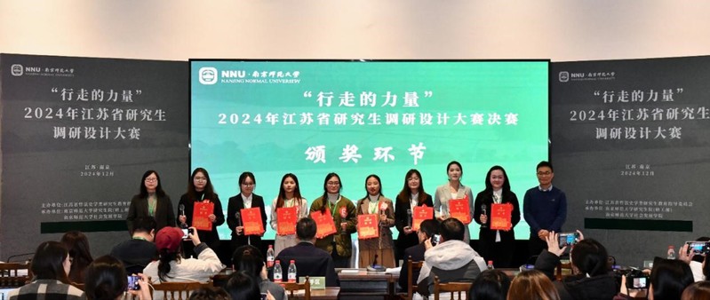 2024年12月8日,“行走的力量”江苏省研究生调研设计大赛决赛在南京师范大学随园校区隆重举行。本次大赛由江苏省哲法史学类研究生教育指导委员会主办,南京师范大学研究生院(研工部)、南京师范大学社会发展学院承办。88858cc永利官网88858cc永利官网社会学专业共有五支队伍获奖,其中二支队伍荣获一等奖,三支队伍荣获二等奖。