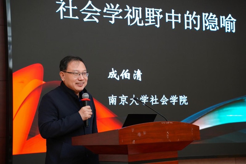 中国社会学会副会长、江苏省社会学会会长、南京大学社会学院原院长成伯清教授深入探讨了社会学视野中的隐喻,并从隐喻的层面反思我们的社会生活与日常表达。他指出,人们在表达和交流中,经常会通过隐喻——使用一些我们熟悉的意象与经验,以帮助受众理解一个陌生的或难以名状的意象或态势。他表示,从社会学角度看,隐喻既可能是一种修辞策略,也可作为一种方法,还能帮助我们进行意义创造。此外,隐喻其实给人们提供了一种认知框架。在日常生活中,人们一般会用“家庭”“江湖”“战场”三个意象隐喻中国社会。这些意象与中国社会密不可分,也存在不可忽视的遮蔽点。