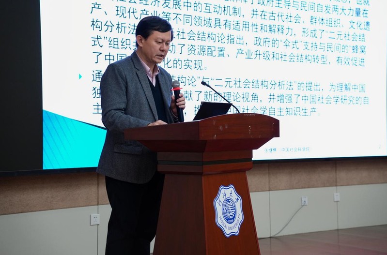 中国社会学会副会长、浙江省社会学会会长、浙江大学社会科学学部副主任毛丹教授以小农议价权的转变为题展开讲演。他表示,学界一般认为,小农在现代产业经济中几乎没有议价权。议价权,即在交易过程中,买卖双方就商品或服务的价格进行协商和谈判的权利。然而,毛丹教授通过田野调查发现,在部分后生产型乡村“农、文、旅”融合的新经济活动中,小农在交易过程具有一定的积极议价权,因此不应刻板地看待小农的性质和能力。他认为,目前支持小农议价权上升的一些结构性条件已经出现,但尚不完全稳定,地方党政、村集体、农户,以及外来经营商应形成合力,共同改善小农积极议价权等条件。