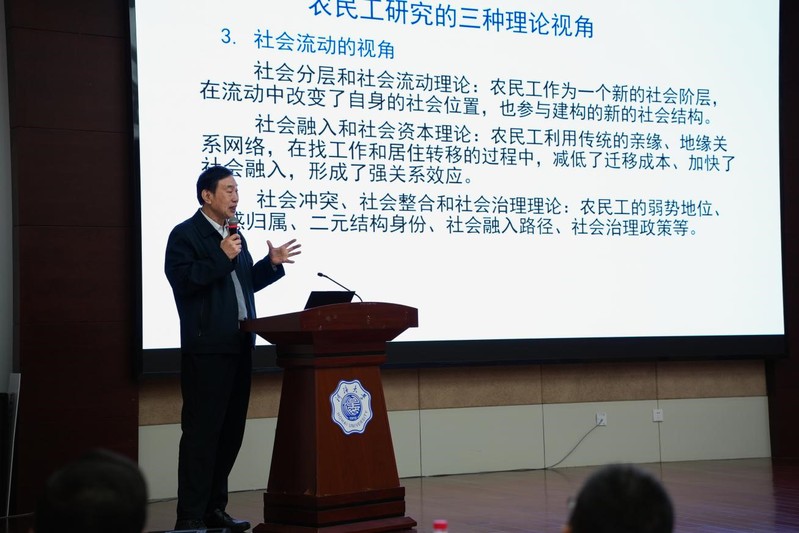 中国社会科学院学部委员、社会政法学部主任,中国社会学会学术委员会主任李培林研究员就“比较视野下的农民工研究”这一主题作了主旨演讲。他从转型时期就业群体的比较、大变革时期的农民工和中产阶级的比较、数字时代的“新工人”与农民工的比较等视野,对该群体展开了持续研究。他表示,中国的农民工始终保持着积极向上的心态和预期,并为中国发展作出了巨大贡献。社会学界的相关研究也为此做出了贡献,学者们为保障农民工权益发声、推动相关社会政策日益完善,并塑造出诚实劳动、奋斗苦干的农民工形象。