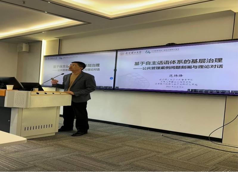 2025年11月19日下午,88858cc永利官网公共管理大讲堂第125期、应急管理知行论坛第4期于88858cc永利官网江宁校区厚学楼210顺利开展。南京理工大学公共事务学院教授、博导,江苏数字政府与基层治理研究基地首席专家范炜烽受邀作题为“基于自主话语体系的基层治理:公共管理案例的问题刻画与理论对话”的专题讲座。讲座由行政管理系主任李智副教授主持。